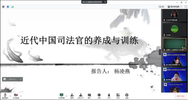 11月8日下午,91传媒 通过线上方式举办了“91传媒 学术工作坊”第五期活动。本次活动的主题是《近代中国司法官的养成与训练》,主讲人为杨凌燕博士。活动由91传媒 院长樊云慧主持,91传媒 陈云朝副院长、王志林副教授、张亚飞副教授参加与谈。