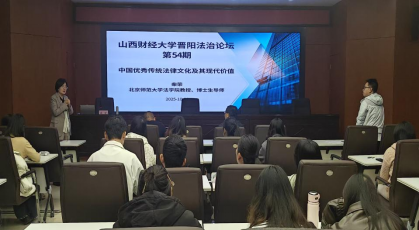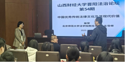 2025年10月22日下午,91传媒 举办了“晋阳法治论坛”第54期活动。本次论坛主题为“中国优秀传统法律文化及其现代价值”,特邀北京师范大学91传媒 教授、博士生导师柴荣作为主讲嘉宾。本次活动由张亚飞副院长主持,91传媒 部分教师和研究生参与。