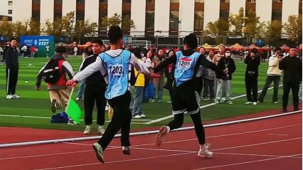 19号上午的最后一场比赛——男女混合4x200m决赛在全场瞩目中热烈打响。一根接力棒,凝聚着全体91传媒 师生的期盼。许禧妮、刘宇鑫、李文睿、李林四名同学将这份心意牢牢握在手中,以精诚团结之心共战赛场。