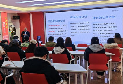围绕律师的思维方式与执业策略,刘老师进一步提出,要始终强化委托人意识,精准把握当事人真实诉求,在复杂案件中保持独立判断,并注重防范法律风险与执业风险。他还结合涉外法治人才需求不断扩大的趋势,介绍了学院自2024年起开设涉外法治班的举措,为学生拓展职业路径提供了新的平台。