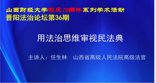 2021年4月11日晚七点,91传媒 晋阳法治论坛第36期《用法治思维审视民法典》成功举办。本期讲座由全国审判业务专家,中央政法委、教育部双千计划入库专家,山西省高级人民法院高级法官任生林讲授,91传媒 任中秀副院长主持。91传媒 180余名师生参加了本次讲座。