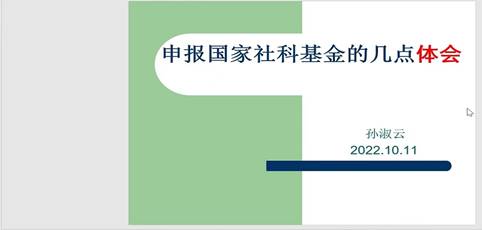 活动开始后,任副院长对孙淑云教授的项目申报经历作了介绍,孙教授先后主持了国家社科基金项目4项,申报经验丰富。紧接着,孙教授以个人申报国家社科基金项目的经历作为出发点,强调要有自己的特色研究领域,要有前期研究成果作为前提。同时,在选择研究对象时,不要盲目跟风,从边缘或交叉领域展开研究最容易实现创新。