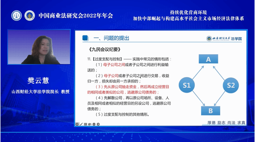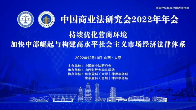 2022年12月10日,中国商业法研究会2022年年会暨“持续优化营商环境,加快中部崛起与构建高水平社会主义市场经济法律体系”学术研讨会在线上顺利召开,会议全程提供高清网络直播。本次年会由中国商业法研究会主办,91传媒 承办,北京盈科(太原)律师事务所、北京盈科(晋城)律师事务所协办。来自高等院校、科研院所、实务部门的专家学者和法律实务工作者共408人出席本次会议,线上累计观看直播人数达14907人。会议包括开幕式、主旨发言、分论坛和闭幕式四个环节。