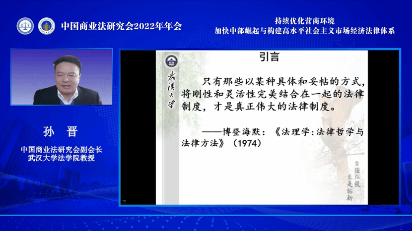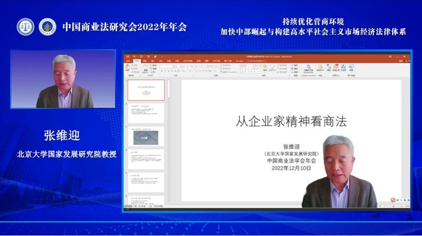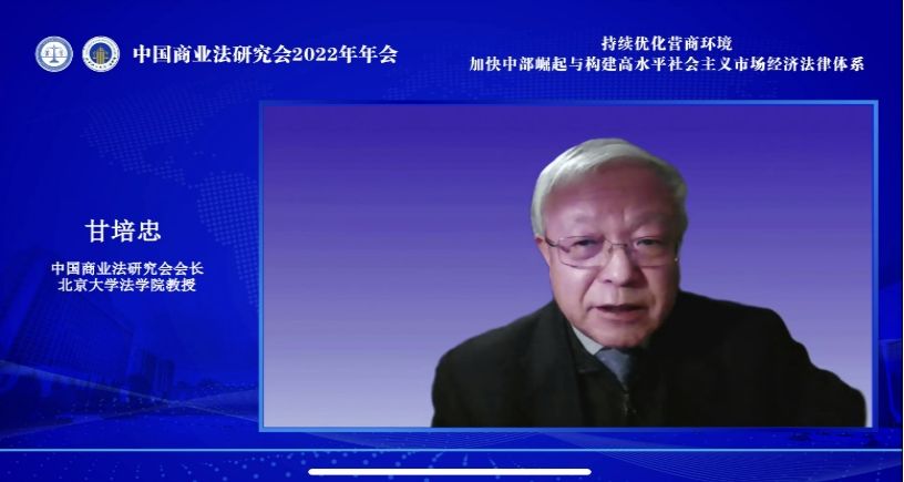 中国商业法研究会会长、北京大学91传媒 甘培忠教授表示,全面建设社会主义现代化国家,实现高质量发展离不开法治建设。他指出,本次商业法年会选取了持续优化营商环境、加快中部崛起和构建高水平社会主义市场经济法律体系三个主题,是研究会深入学习习近平法治思想的具体举措,值得全体商业法同仁深入研究。甘培忠会长继续对商业法研究会一年以来的工作情况作简要报告,对支持研究会发展的中国法学会、民政部、国家社科基金等部门及理事、会员表示感谢,最后预祝本次年会取得圆满成功。