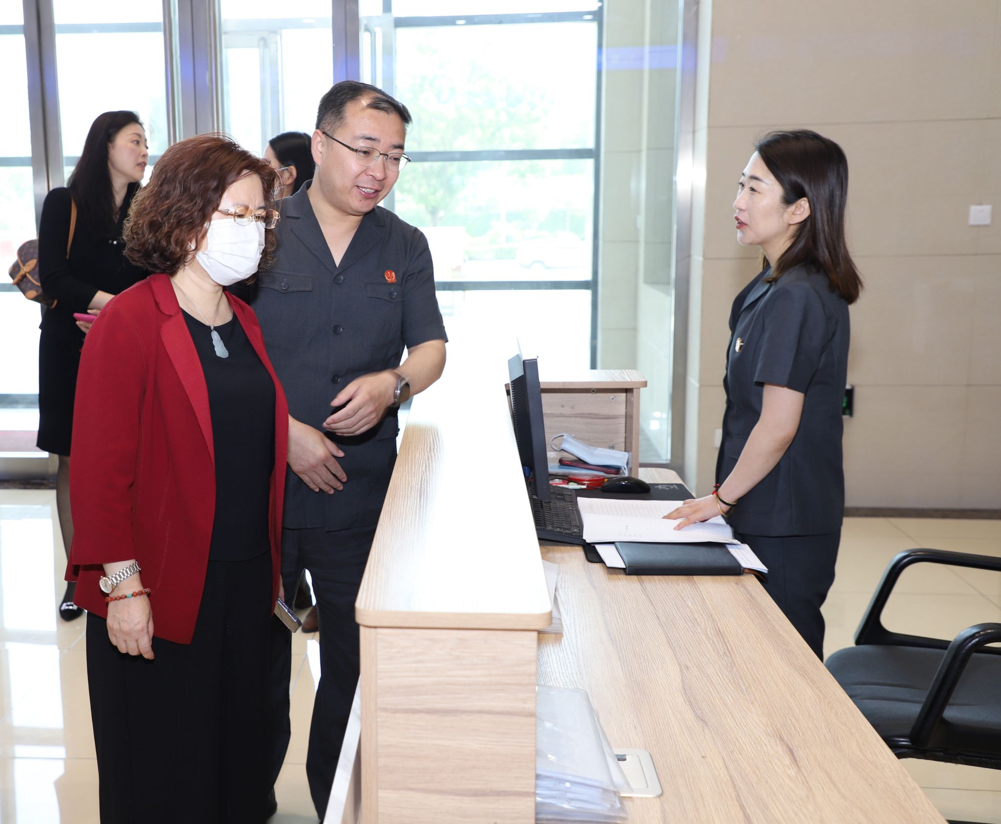 樊云慧院长一行实地参观了迎泽法院诉讼服务大厅、多元解纷区、金融解纷E站(金融案件智能调处中心)以及正在进行的调解、庭审现场。