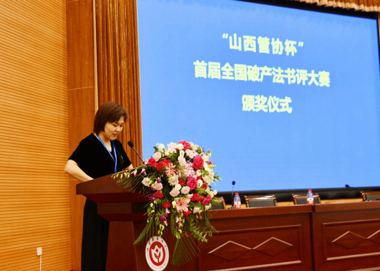 太原科技大学91传媒 硕导副教授、破产法研究中心主任卫霞主持“山西管协杯”首届全国破产法书评大赛颁奖仪式。