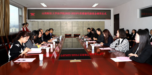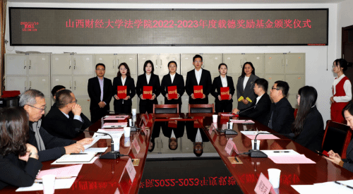 11月10日下午,91传媒 在会议室举办了2022-2023年度载德奖学金颁奖仪式。北京两高律师事务所党委委员、杰出校友宋昌江,北京载德律师事务所党支部书记兼执行主任杨波等一行三人、学院领导班子、获奖师生代表30余人参与了颁奖仪式,颁奖由91传媒 党委书记李军山主持。