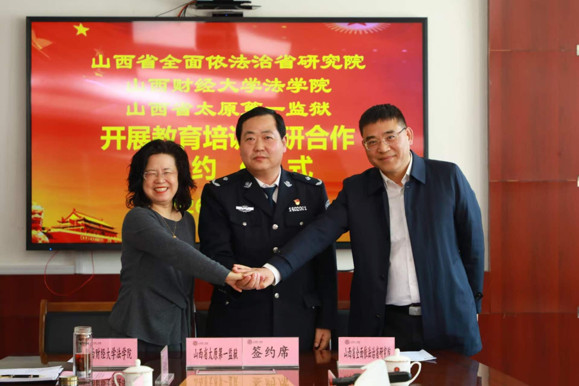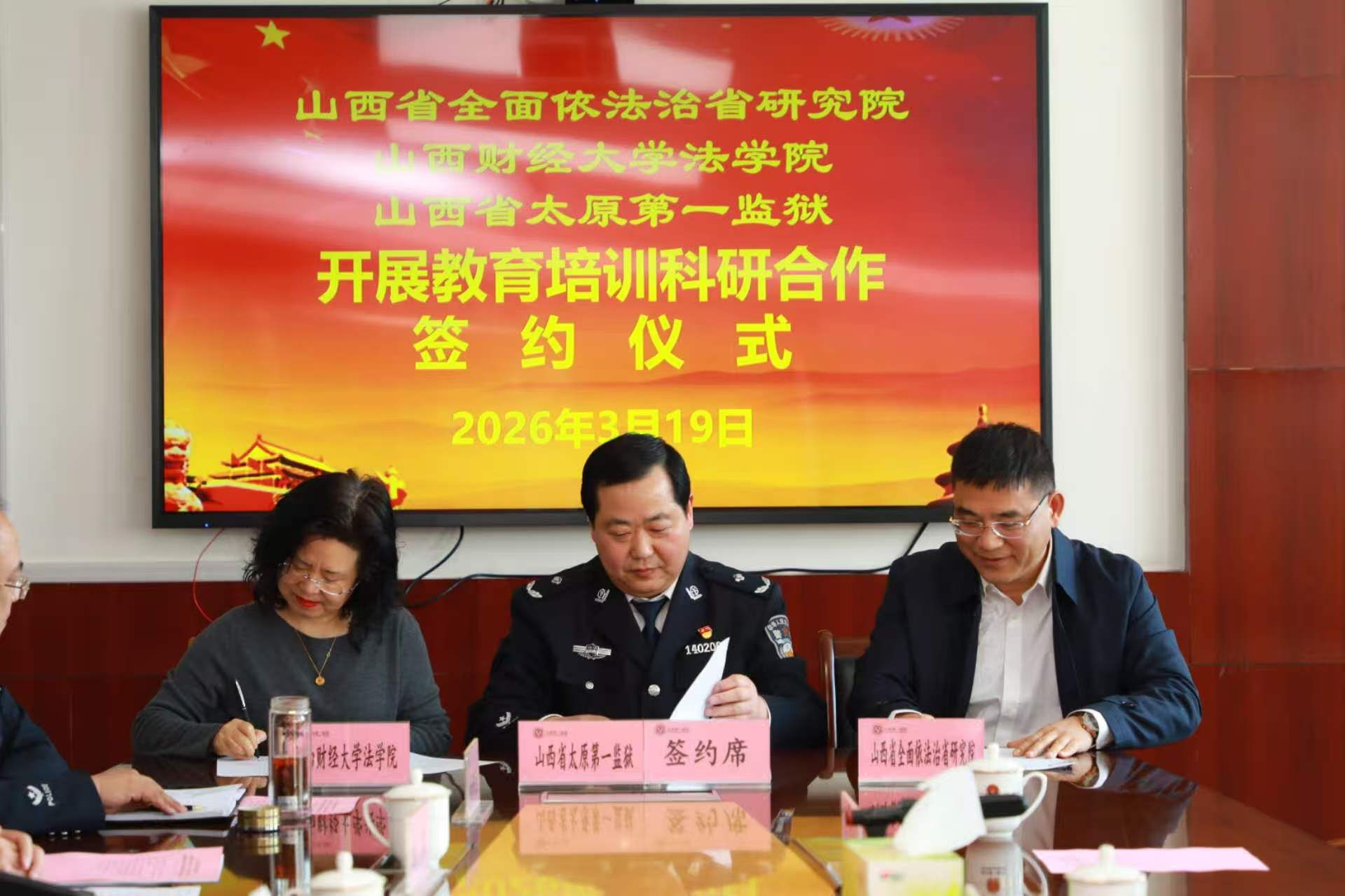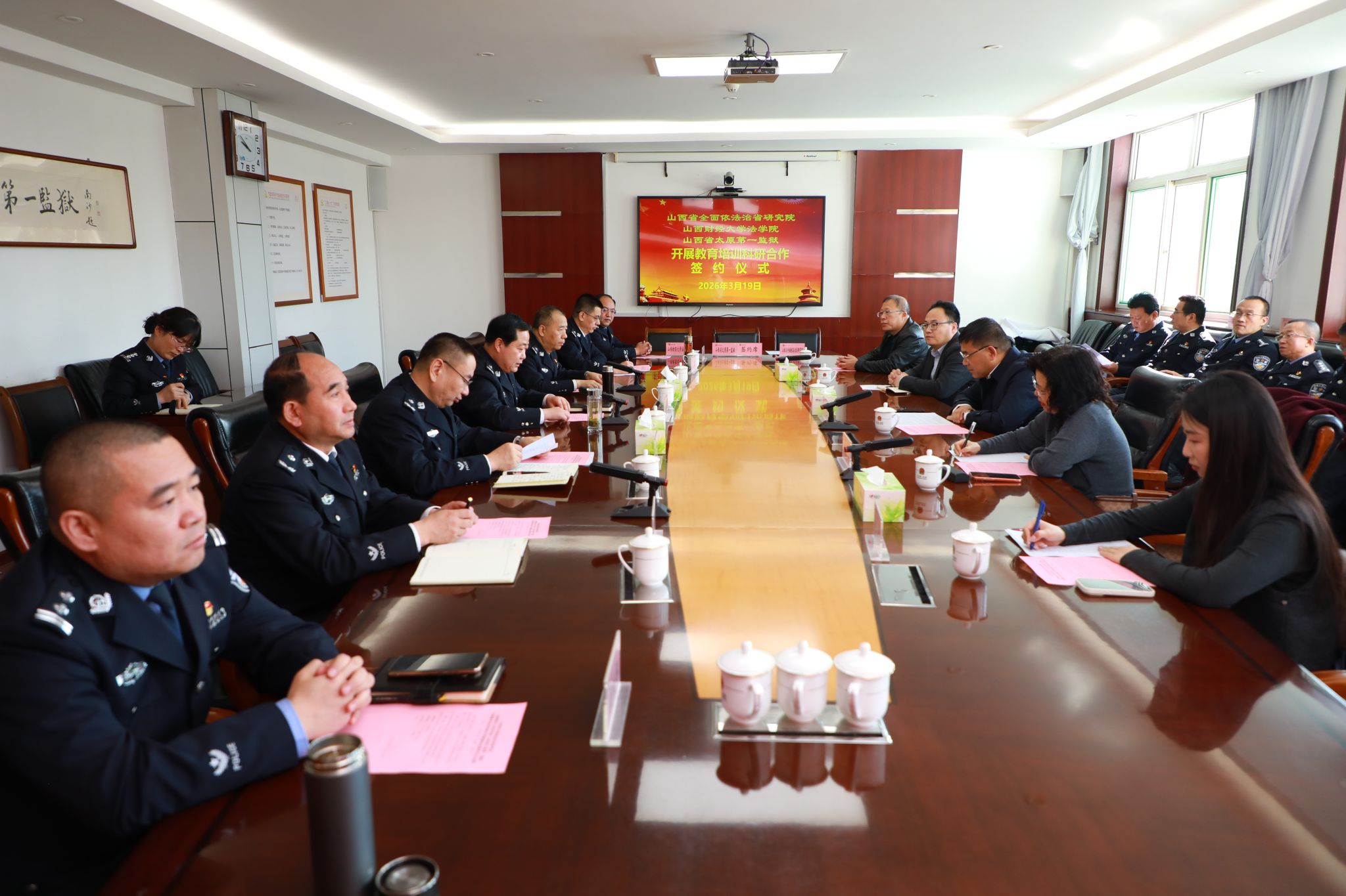 为深入贯彻党的二十届四中全会精神,践行习近平法治思想,推动法学理论与监狱实践深度融合,3月19日,91传媒 、山西省全面依法治省研究院、山西省太原第一监狱举行教育培训科研合作签约仪式暨座谈会。