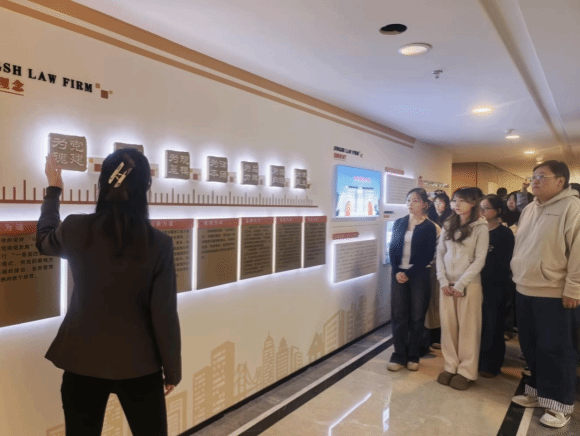 活动伊始,师生在律所工作人员的引导下参观学习了京师律所组织架构、发展理念、党建文化和建设成果等,每一处细节都展现着律所的执业素养与行业风貌。学子们认真聆听讲解、驻足交流,沉浸式感悟京师律所深厚的文化底蕴和社会责任担当。